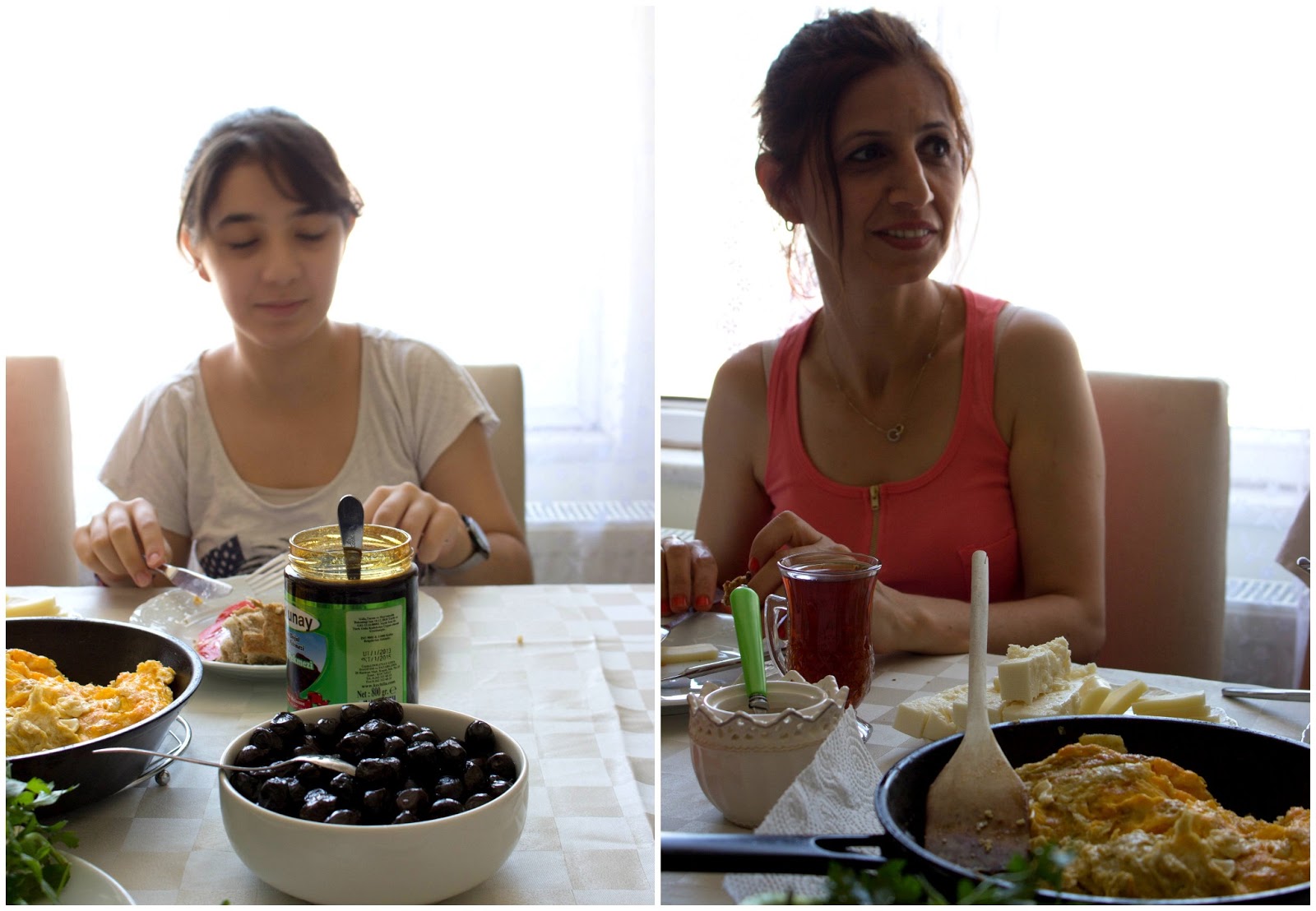 Paprastas sekmadienis turkų namuose yra, kai tetos, seserys, broliai, seneliai ir anūkai susirenka į vienus namus sėda visi kartu pusryčiauti prie stalo nukrauto iš ką tik turguje pirktais žalumynais ( agurkais, petražolėm, mėtom, svogūnų laiškais, paprikom), sūriu, duona, pomidorais, alyvuogėm, keptais ar virtais kiaušiniais, vaisiais, medumi ir uogiene. Uogienės visada būna. Tikrai.