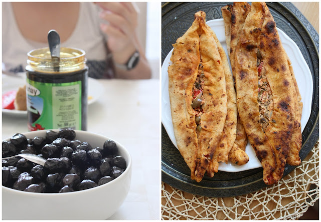 ReplyDeleteTen borekai arba dar pide vadinama. Juos atvežė vyro teta iš Iskenderūno. Kaip ir daugelis ten gyvenančių moterų, ji pagamino įdarą, nunešė į vietinę duonos kepyklėlę dar vadinamą 'firin' ir ten jie su savo tešla greitai iškepė. Įdare buvo Hatay mėgstamas corek otu sūris, kuris panašus į sausą varškę su prieskoniais, čiobreliai, paprika, žalios alyvuogės ir tiek.